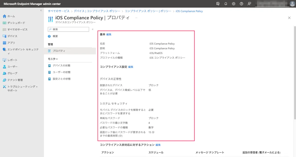 - 開発用のIntuneのデバイスコンプライアンスポリシーをエクスポートして本番用のIntuneにインポートする(次回の記事)