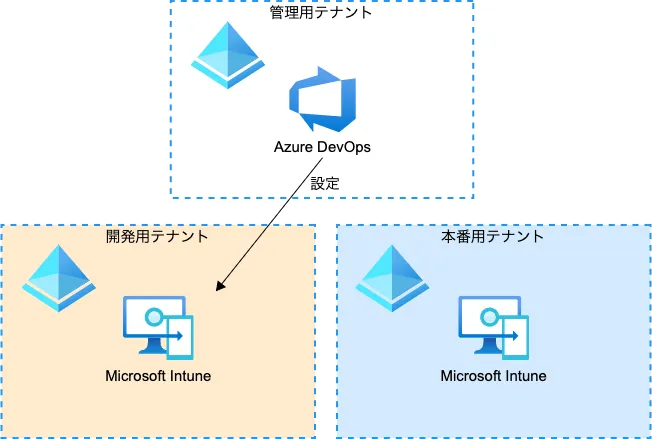 全体のコンセプト上、上記の図にも本番用のテナントとIntuneが描かれていますが、今回はほぼ登場しません。