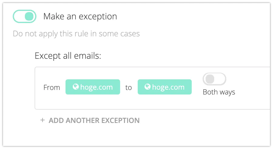 リモートドメインの設定の有無で、同一ドメイン内でのメール送信時の動作が変わります。同一ドメイン内でFusionルールを適用したくない場合は、mxHeroダッシュボードの”advanced option”から、除外設定を行ってください。