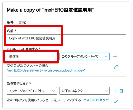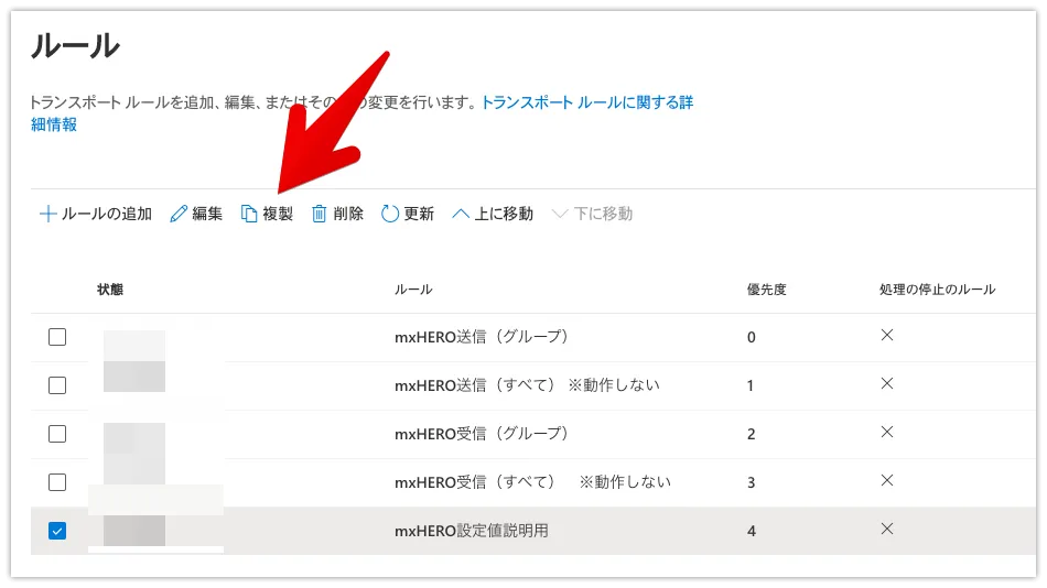 作成したルールを選択し、複製して受信ルールを作成します。