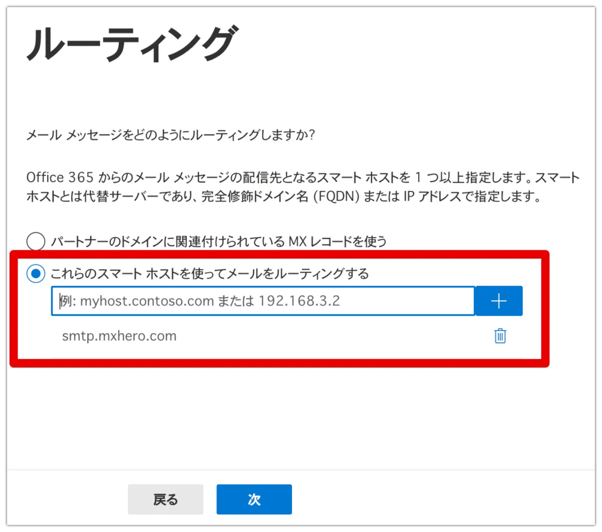 次にルーティング先ホストを指定します。
