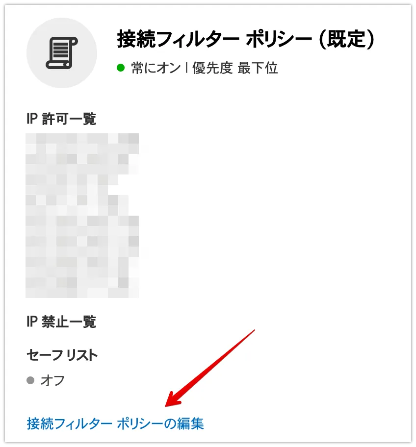 接続フィルタポリシーの許可IPを編集します。