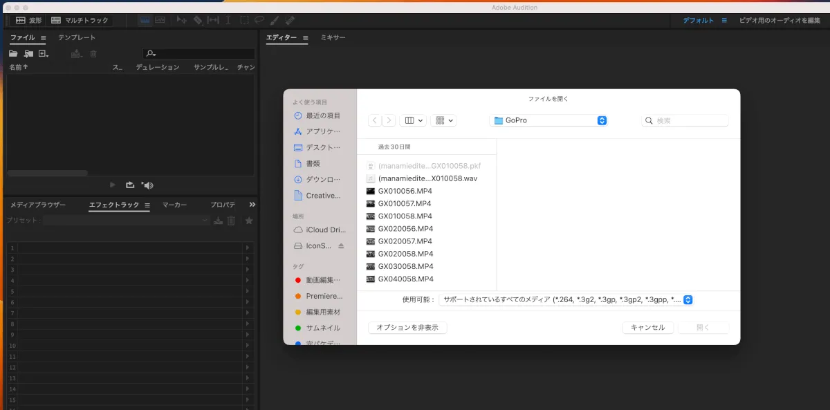 音声データをAuditionで開く