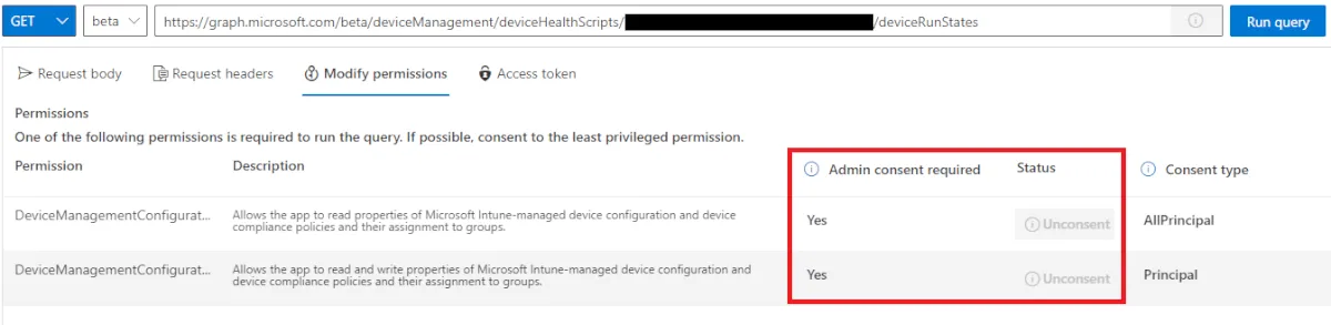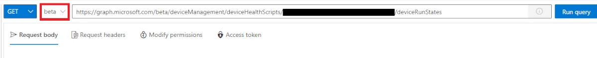 - https://graph.microsoft.com/beta/deviceManagement/deviceHealthScripts/{手順①で取得したGUID}/deviceRunStates