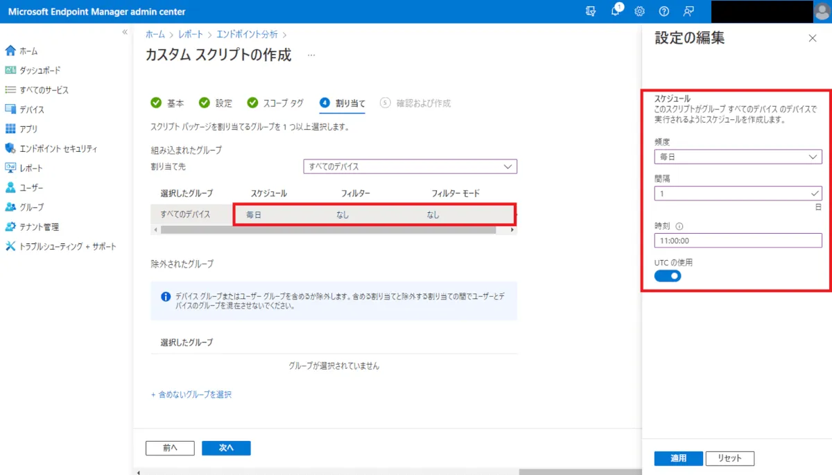 - Intune から [エンドポイント分析] プロファイル が配布済みであること