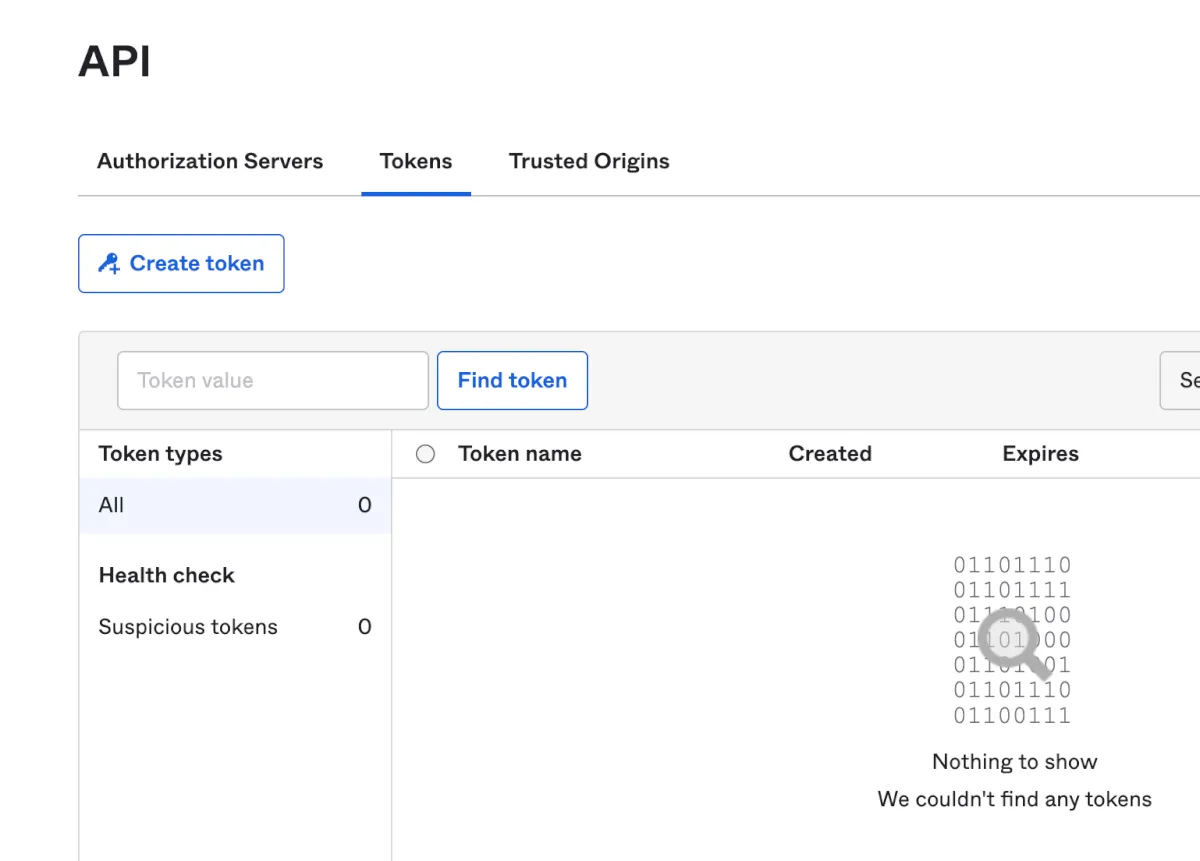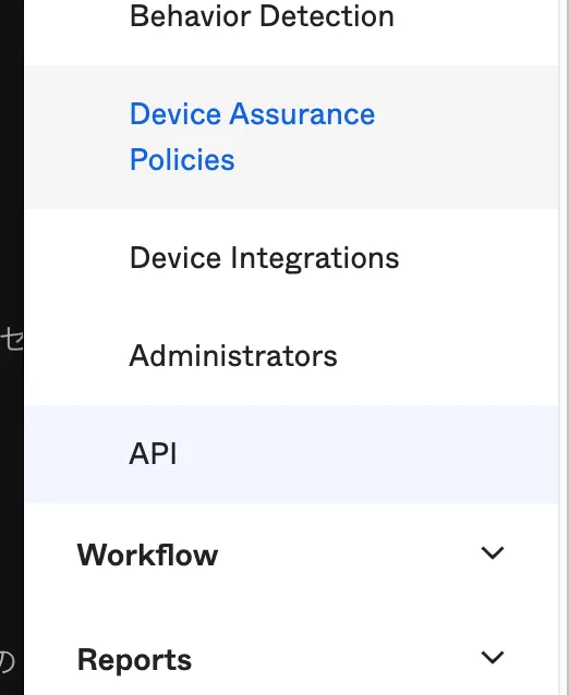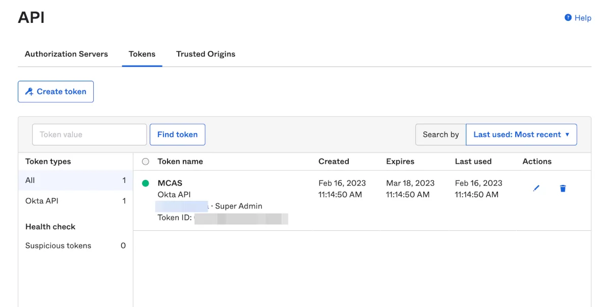 MDAとの接続はAPI経由となるため、Okta側でまずAPIトークンを発行する必要があります。