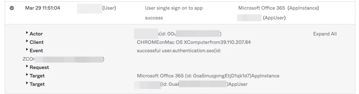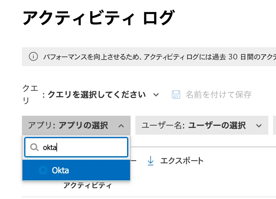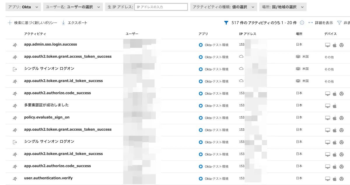 - Oktaのアクティビティログが表示されます。