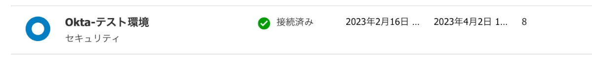 しばらくすると、状態が「接続済み」となり、Oktaに登録されているアカウント数等が表示されてきます。