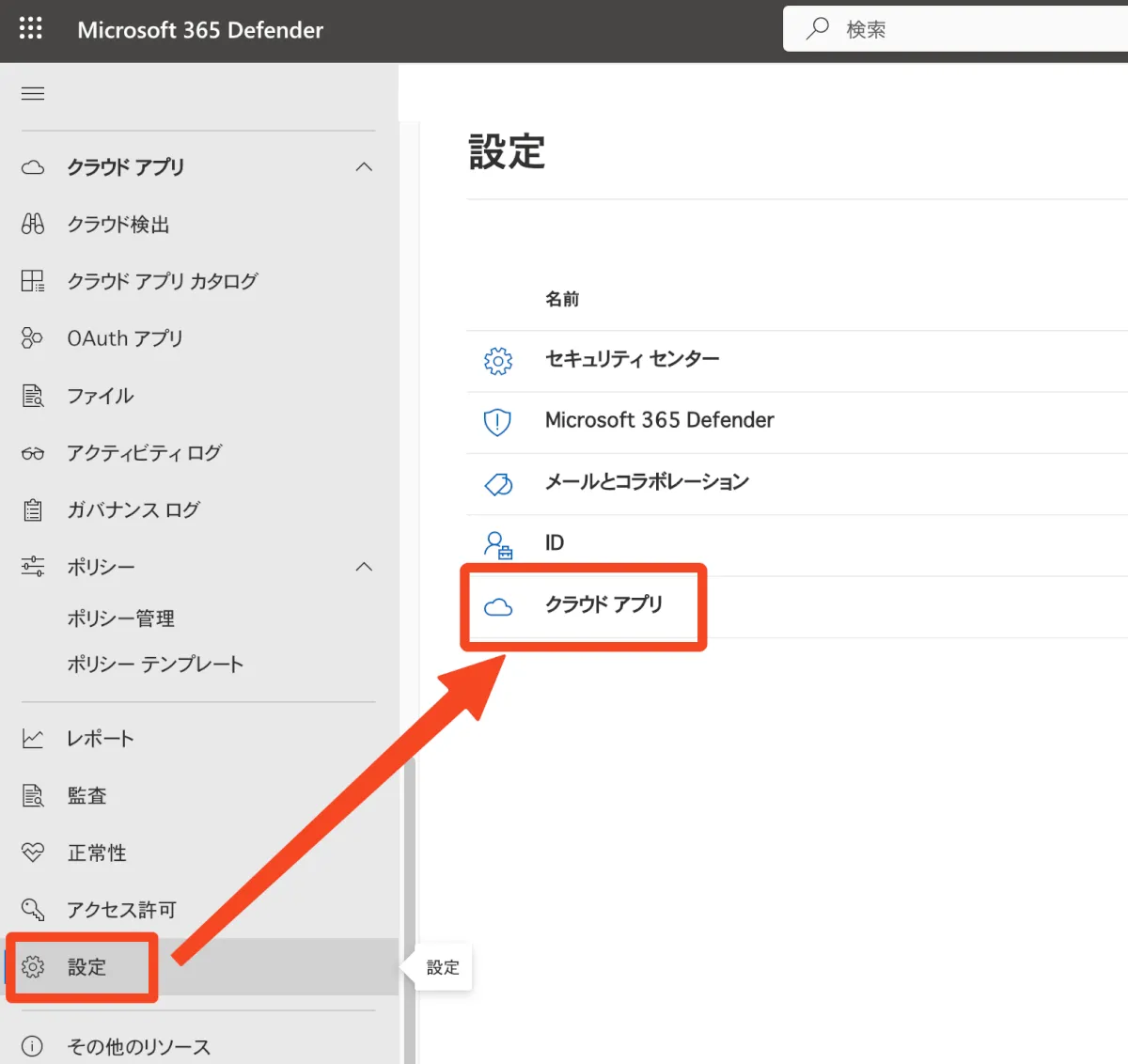 - 「設定」→【クラウドアプリ】をクリックします。