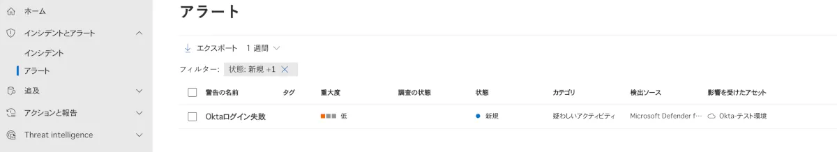 5分後くらいに、アクティビティログに記録されMicrosof Defenderへアラートとして表示されてくれば成功です。