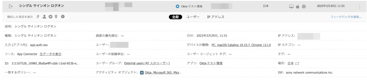 Okta側で以下のように出力されているログは、MDAだと以下のように表示されてきます。