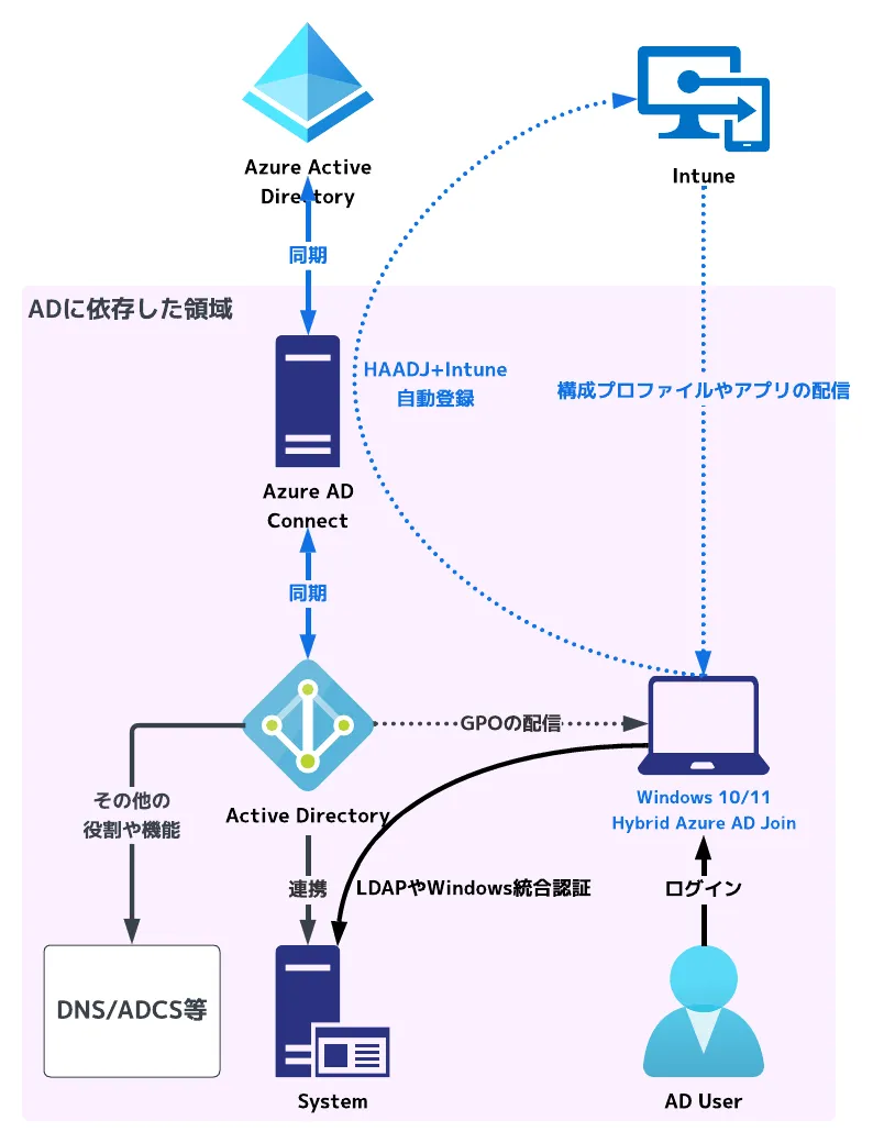 そもそも「オンプレ AD に依存する」とはどういう状態なのかについて、整理しておきたいと思います。