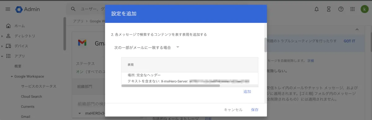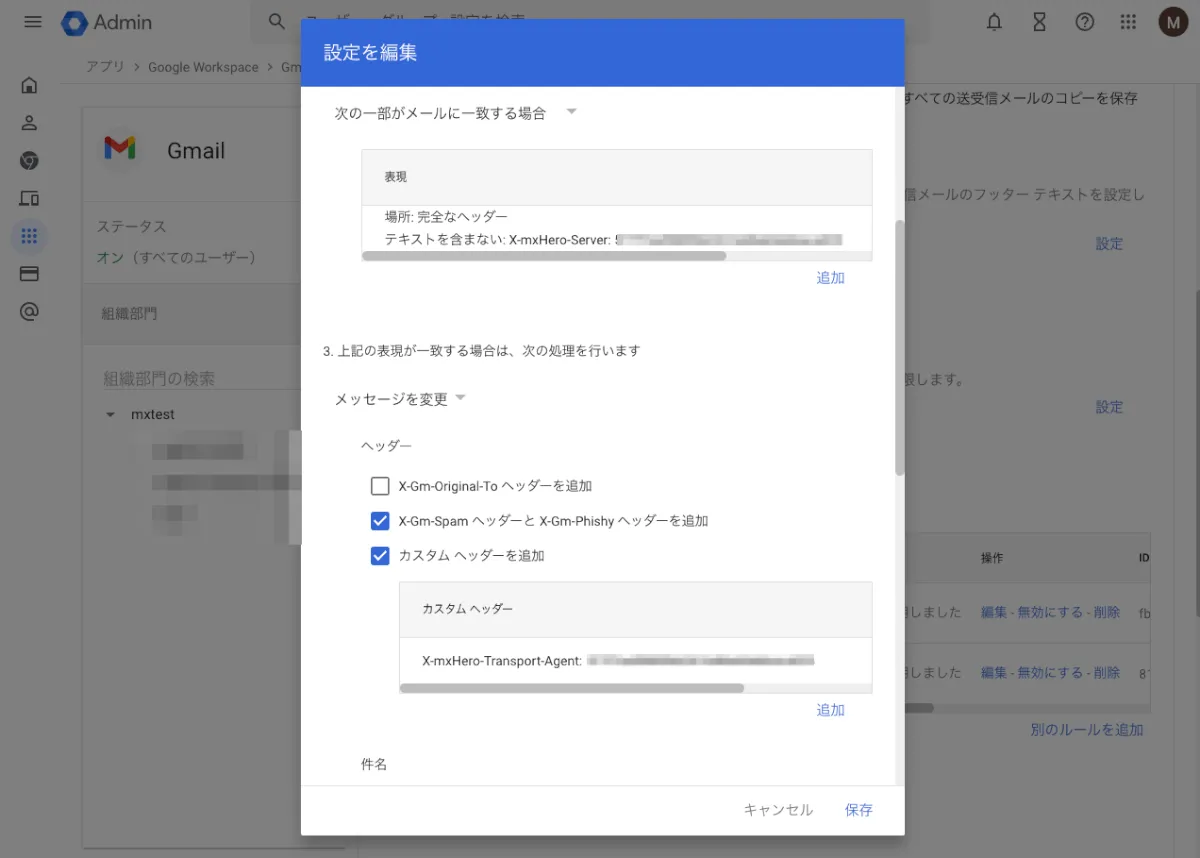 X-mxHero-Server: <事前にメモしておいたトランスポートエージェントの値>- 例: