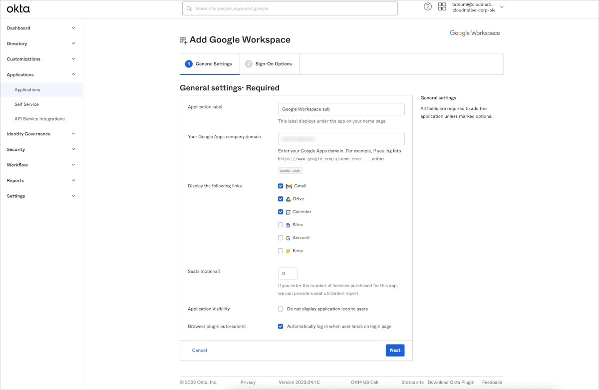 Application labelにOktaダッシュボードに表示する際の名称を入力