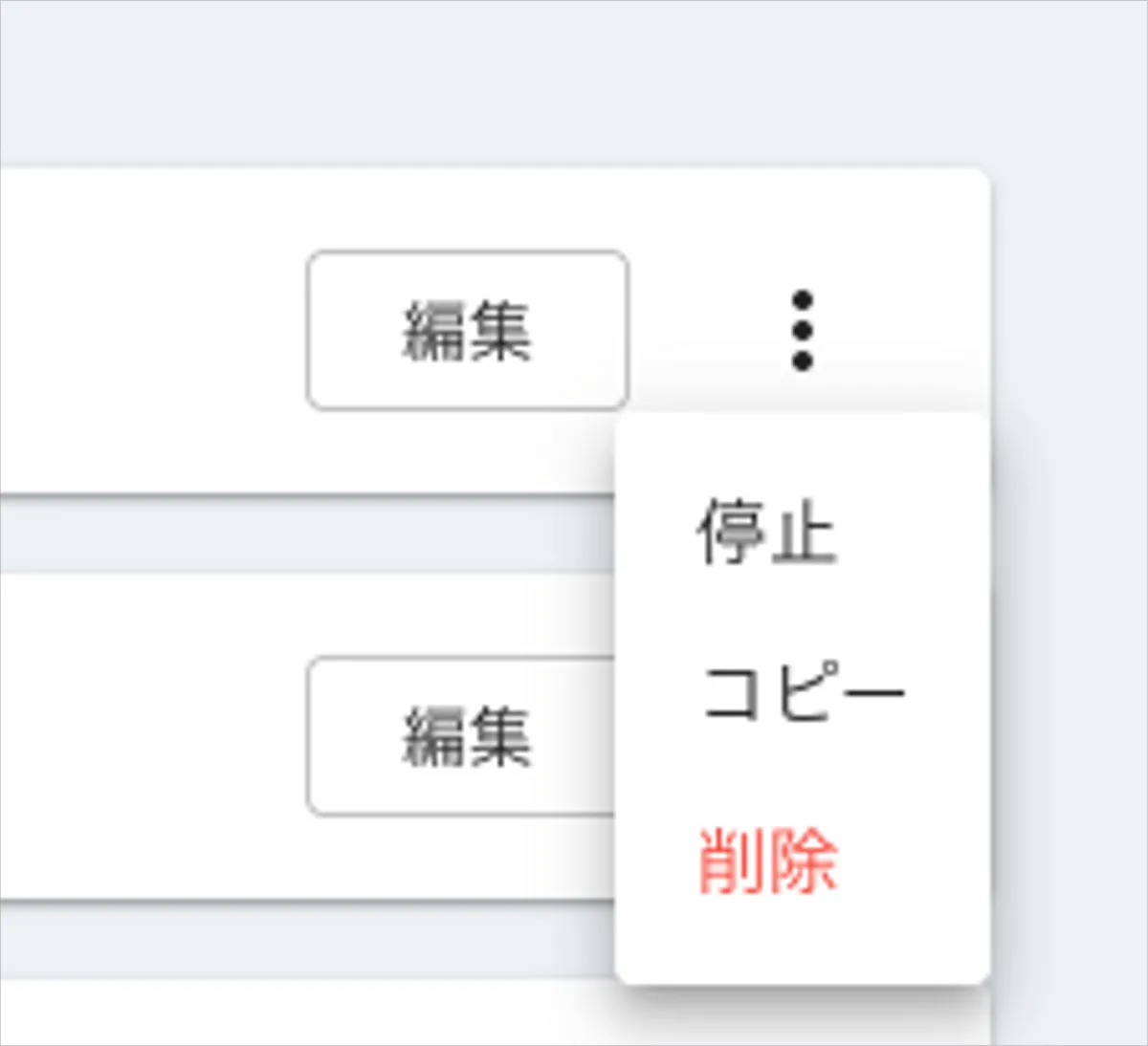 - 作成したルールは右端のメニューから停止(無効化)、コピー、削除、編集を行うことができます。