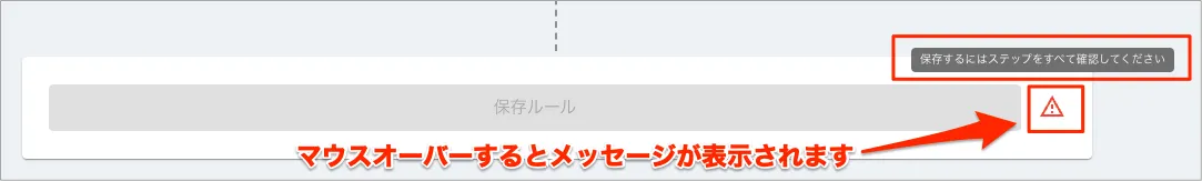 - 「保存ルール」が選択できない場合は右端のびっくりマークにマウスを重ねるとエラーメッセージを確認できます。