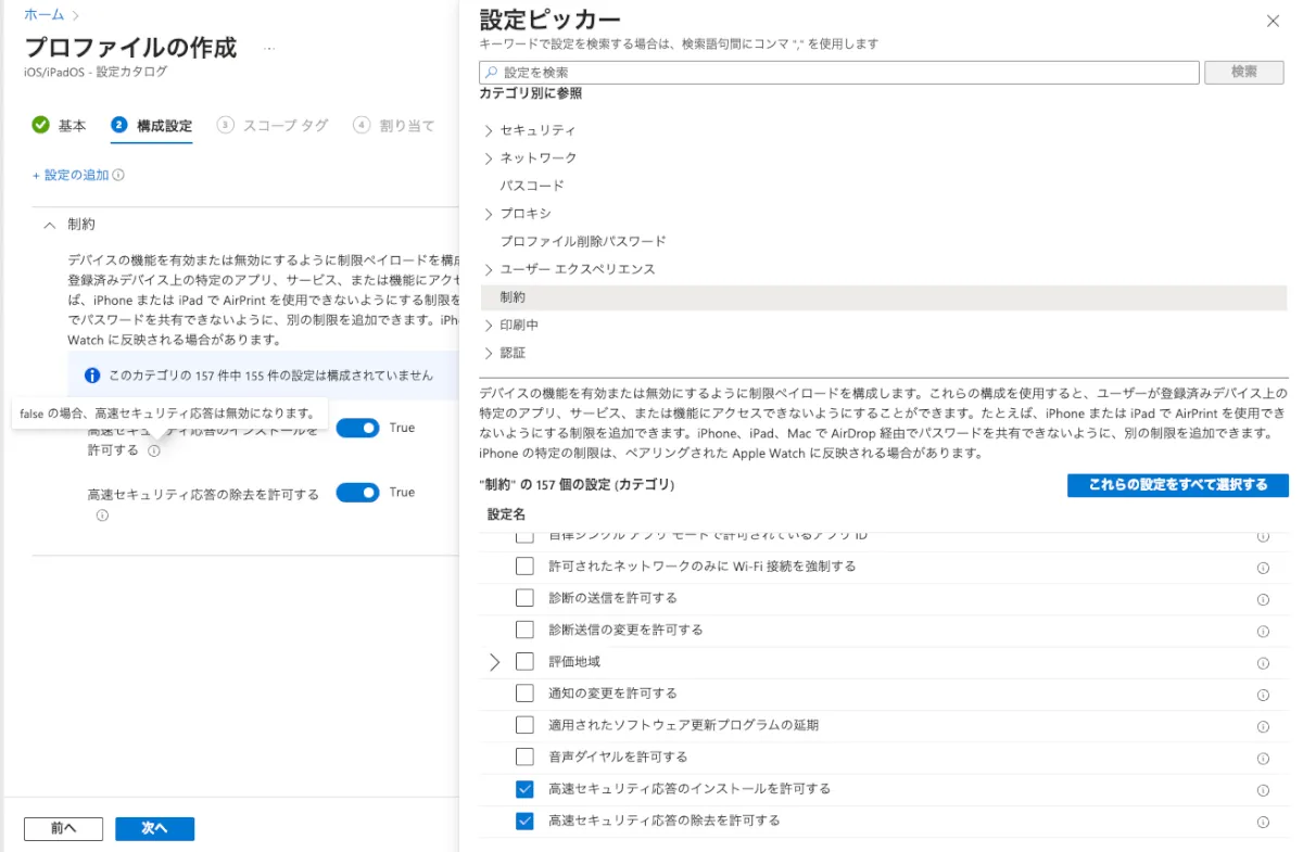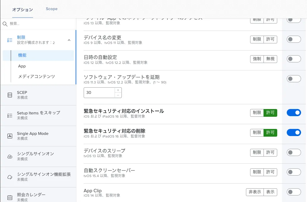 MDMで緊急セキュリティ配信を制御したいと考える方は、以下が気になっているのではないでしょうか?Jamf Proでどうなっているか検証してみました。設定の有無についてはIntuneでも確認しています。