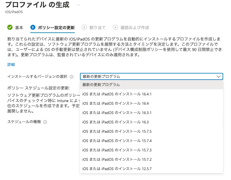 Intuneの更新プロファイルも同じ結果でした。(それはそうですよね)