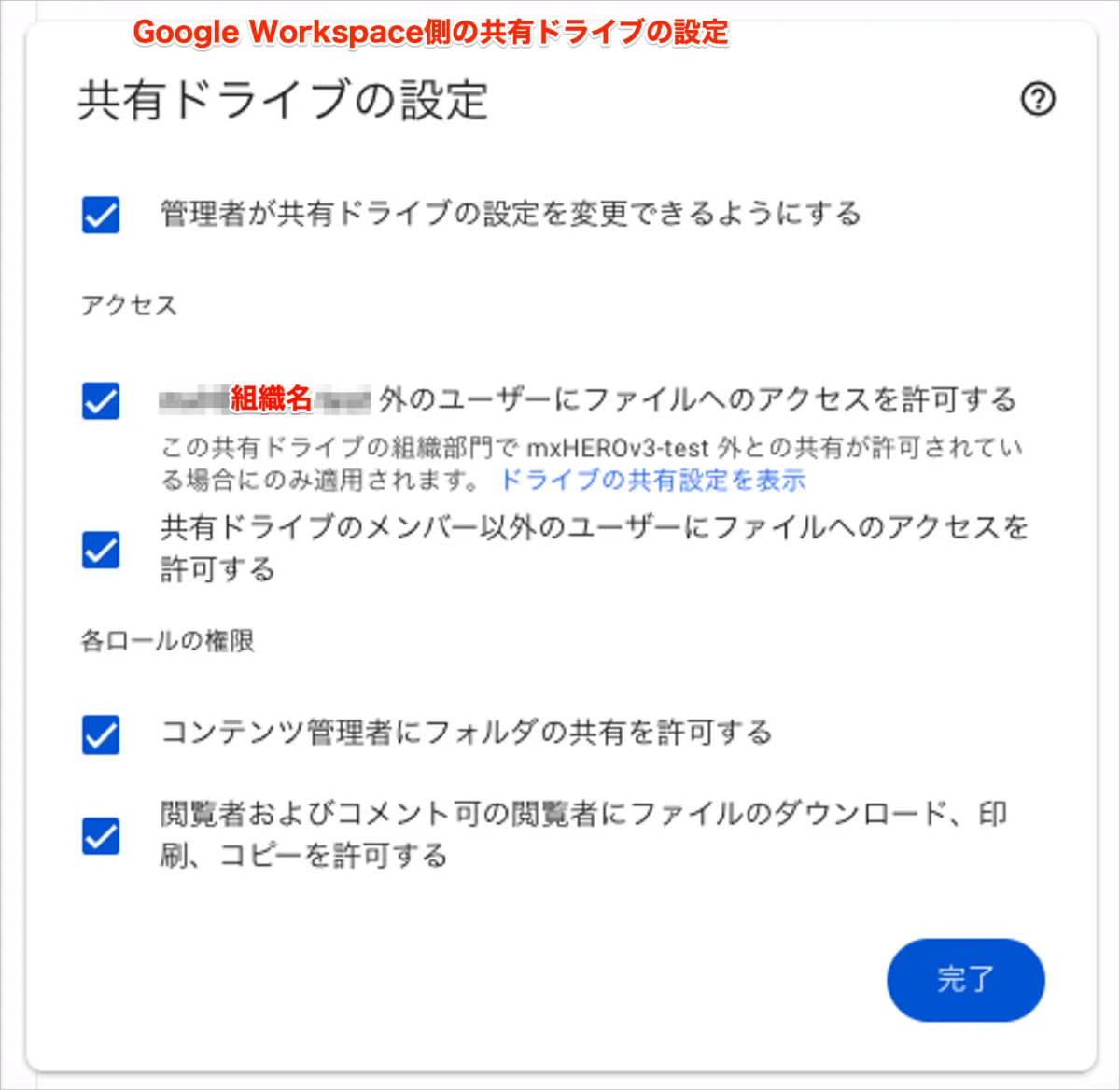 自社のセキュリティポリシーによっては共有ドライブ側の設定を変更している場合があるかと思います。