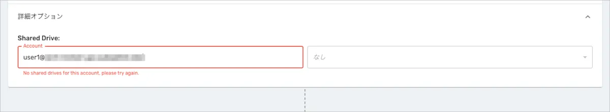 - 「No Shared drive for this account, please try again」のエラーが表示されます。