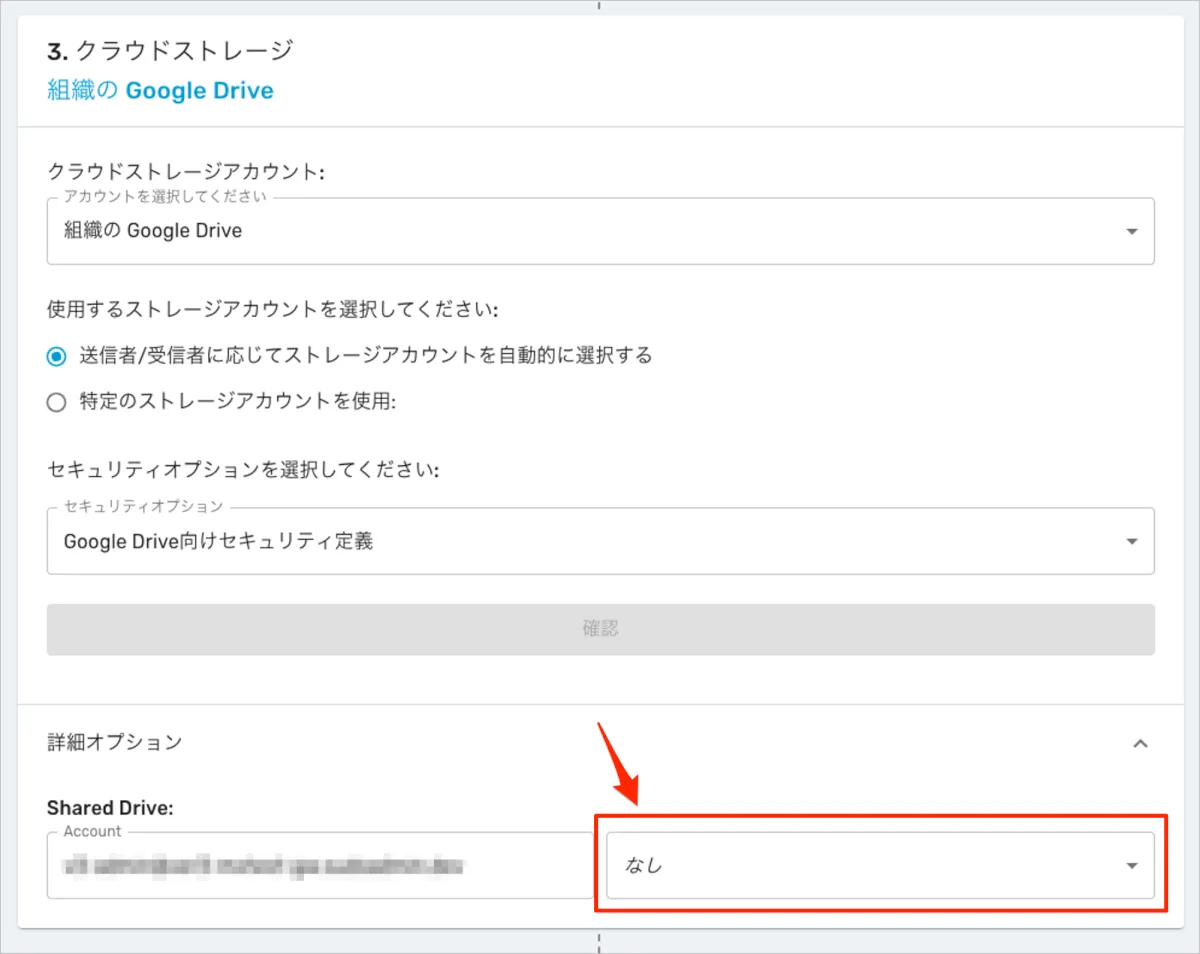 共有ドライブの選択で「なし」を選択したら?