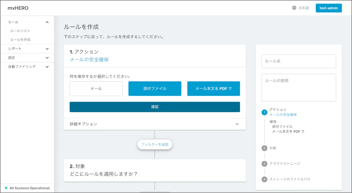 続いて、ルールを作成します。[ルール] > [ルールを作成]を選択し、[メールの安全確保]のオプションを選択します。