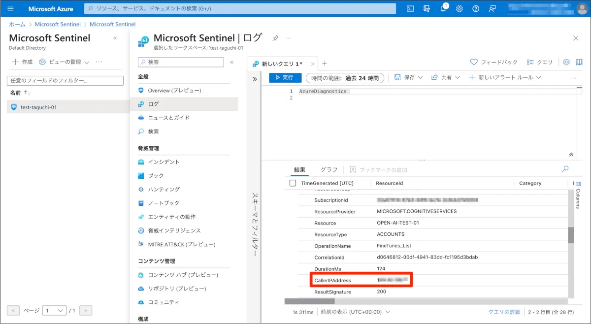 Azure OpenAI Serviceに関わるログ(診断情報)はLog Analiticsに送信し、Sentinelなどで分析を行うことができます。例えばAPIを実行した際のクライアント側のIPアドレスなどは取得できるので、それらを使って目付けしていくというものありだと思います。