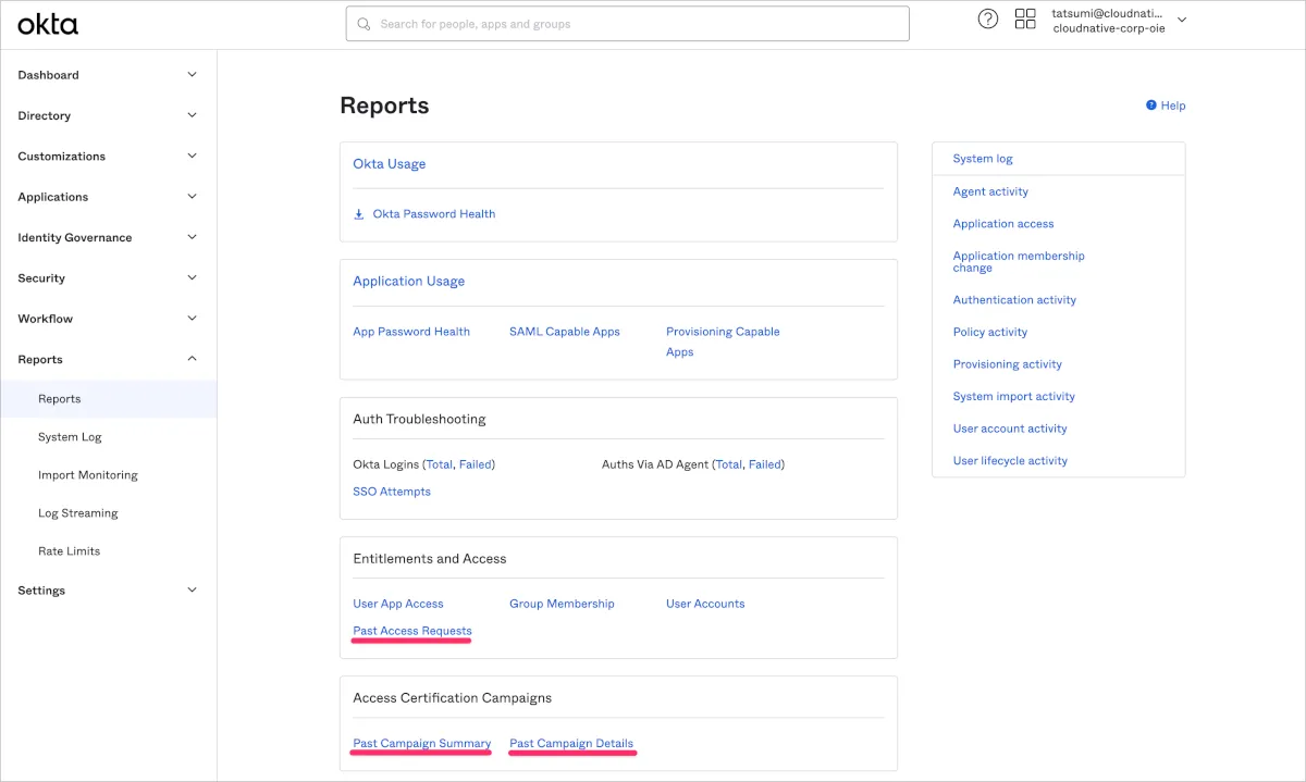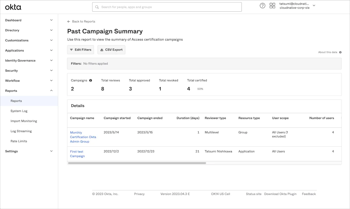 Access CertificationsとGovernance Reportsは関連性が高いためこの検証ブログ記事ではその両方を取り扱うこととします。