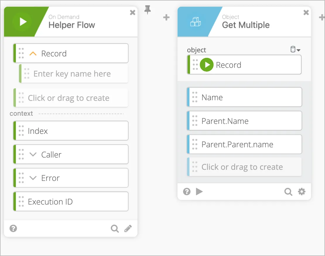 - Flow2およびFlow3からデータを受け取るためにオブジェクト型の変数名Recordを設定しておきます。
