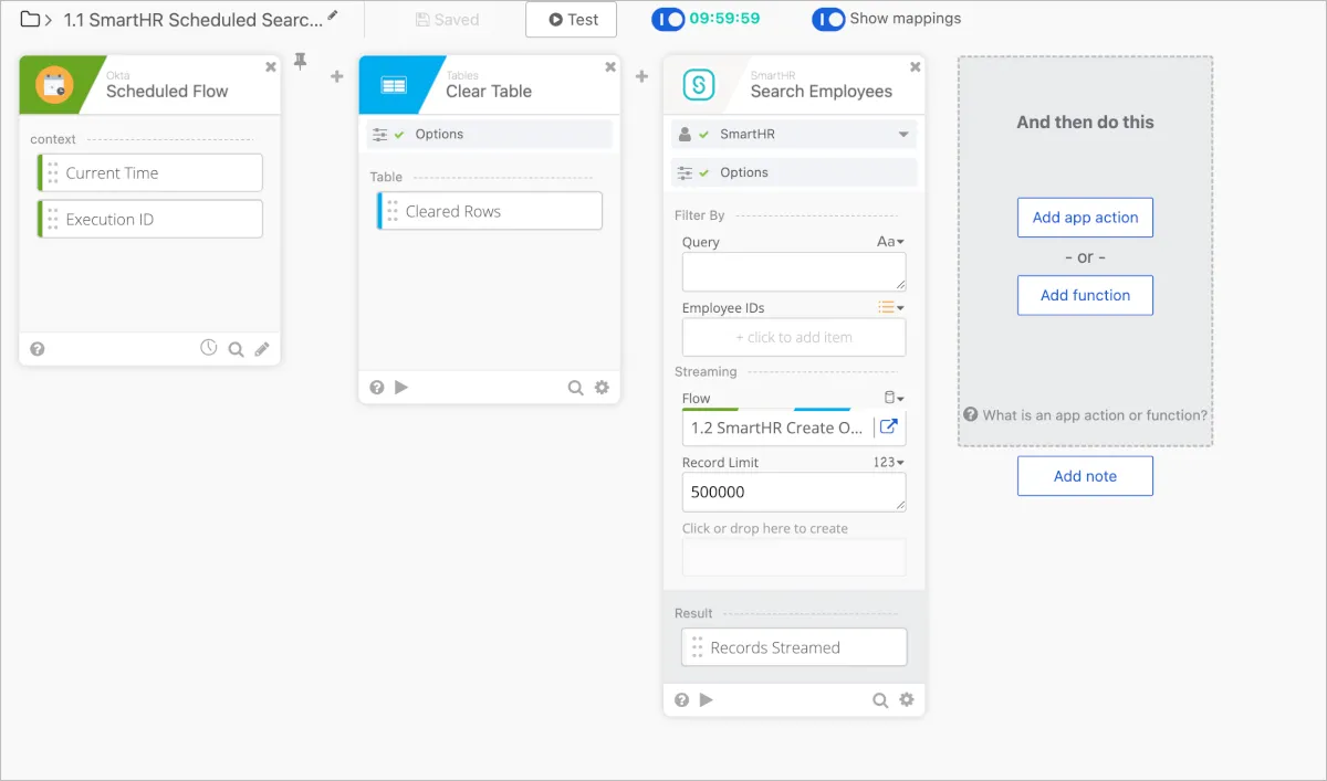 Flow1:1日に1回実行し、SmartHRの登録情報を検索