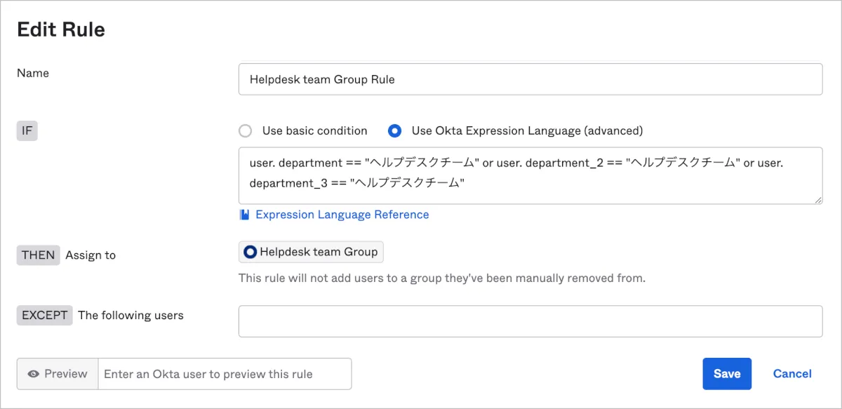 これは以下のようなGropu Rulesによってどのdapartmentに値が入っていてもアサインするように設定しているため、自動的に処理が行われます。