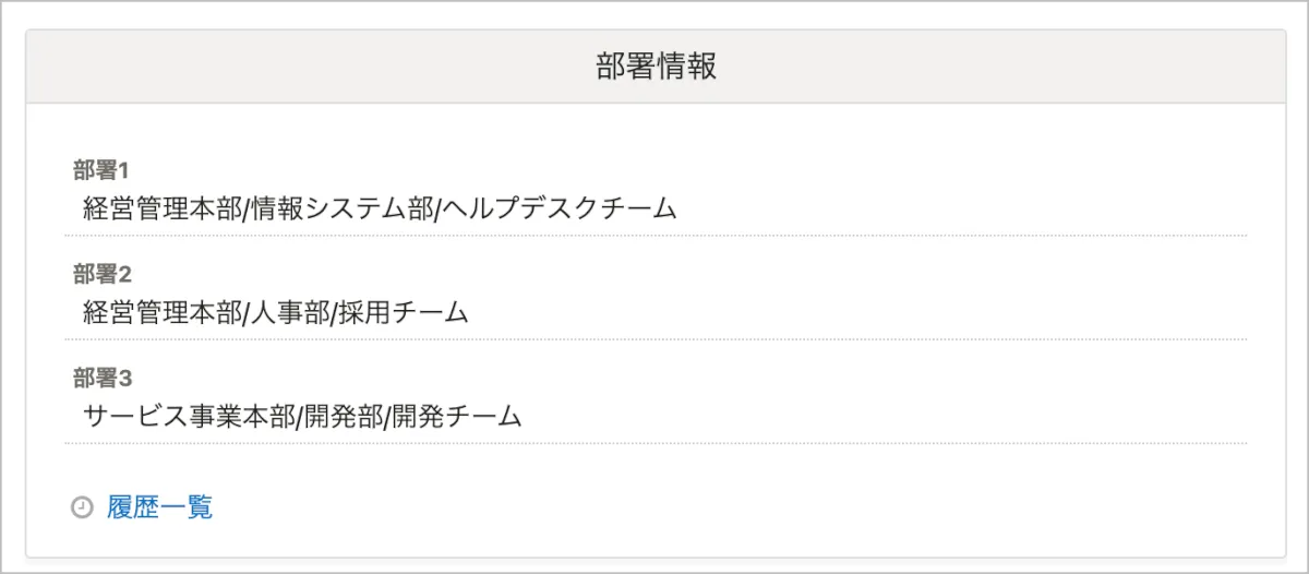 SmartHRでは以下のように1ユーザーに対して最大3個の部署情報を付与することができます。