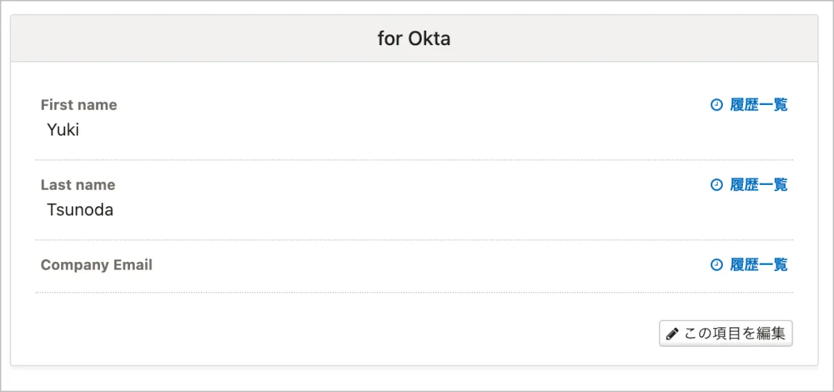 そしてカスタム従業員項目として追加したfor Okta.First name,for Okta.Last name,for Okta.Company Emailです。