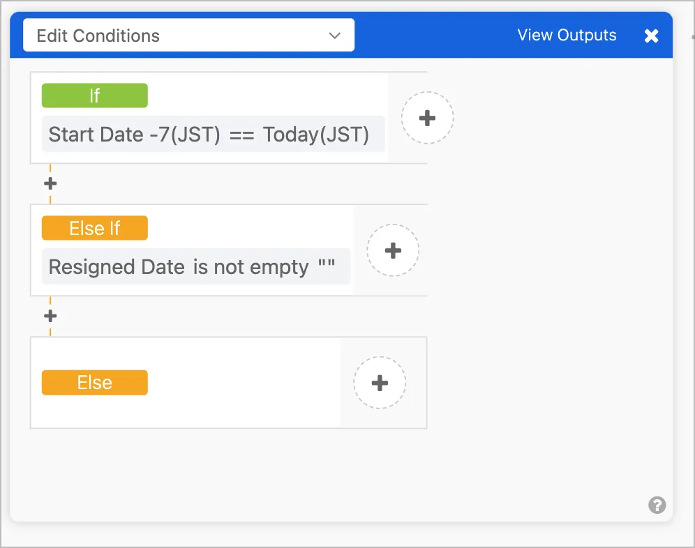 - If/Elseカードにて、退職日の翌日が当日であるかを判定