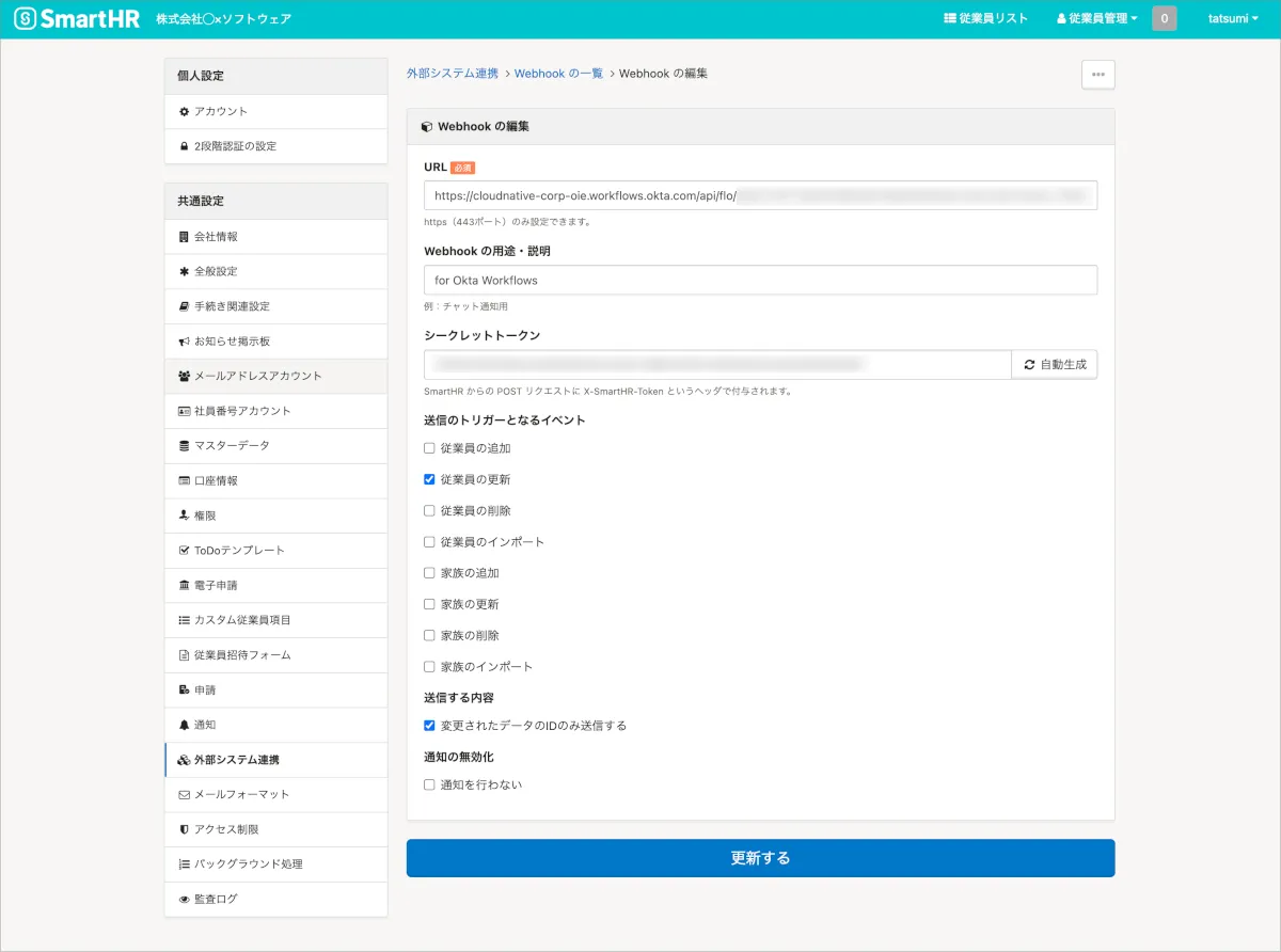 Flow3:SmartHR上の更新情報を受け取ってOktaの属性をアップデート