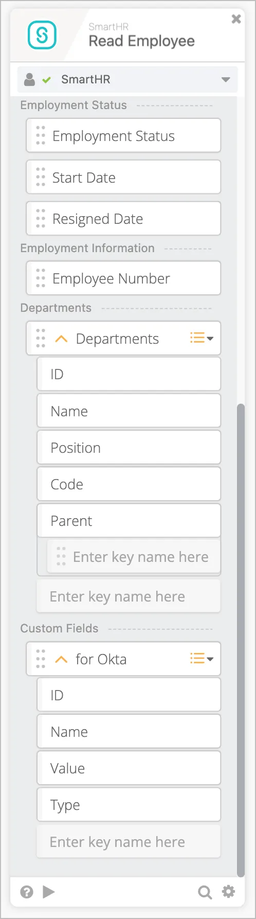 - SmartHR Read Employeeカードにて、取得したSmartHRのIDを利用し、必要な項目を取得