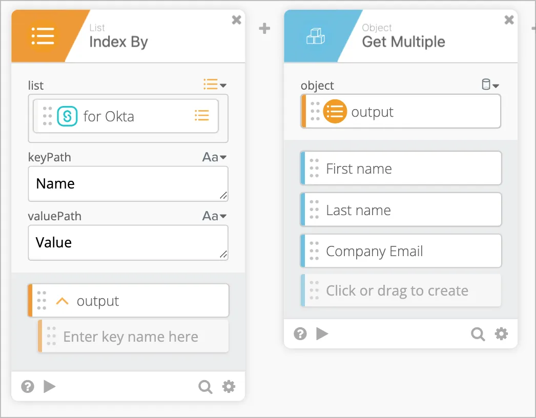 - OktaのCreate Userカードにて、これまで作成した情報を利用しユーザーを作成