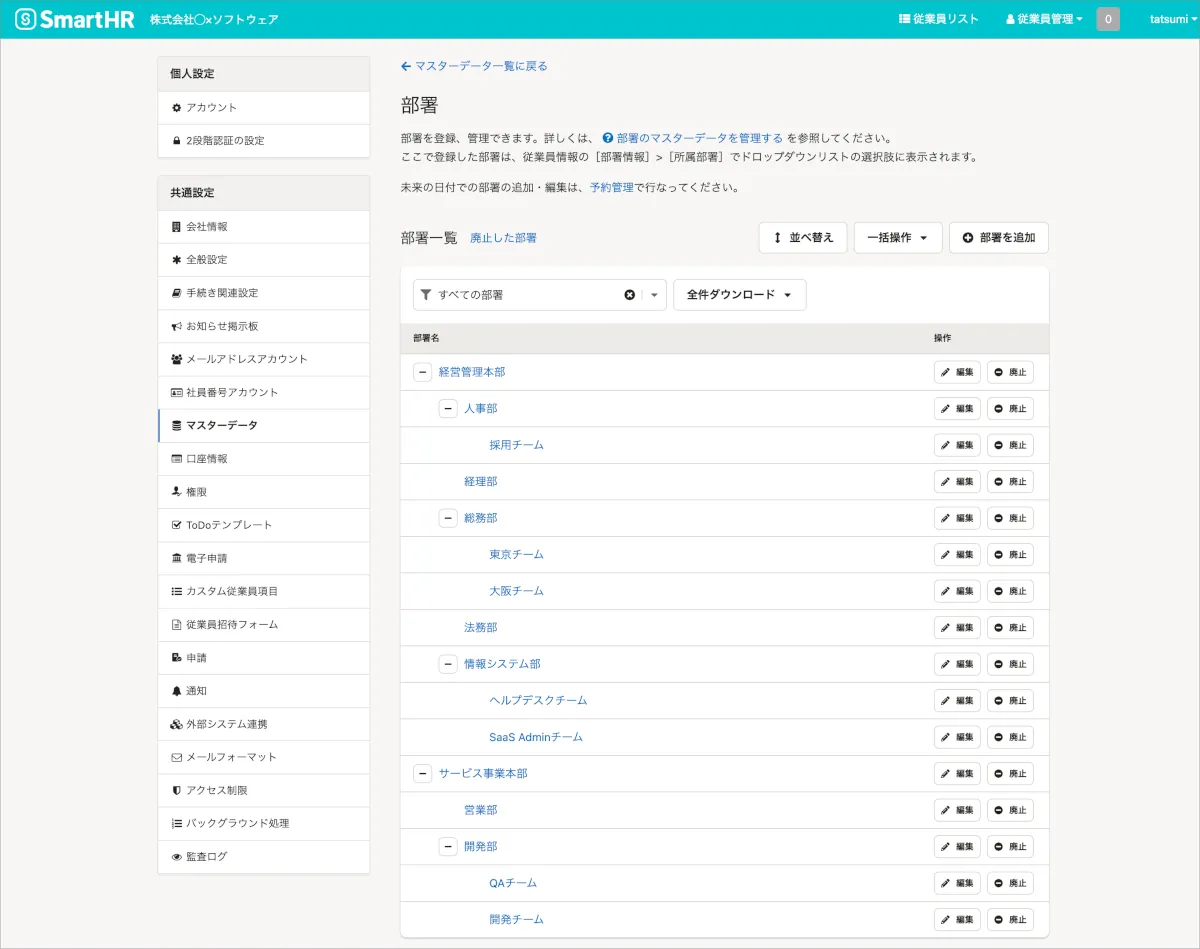 ちなみに部署情報はSmartHRでは予約管理機能により、従業員情報の更新予約が可能です。