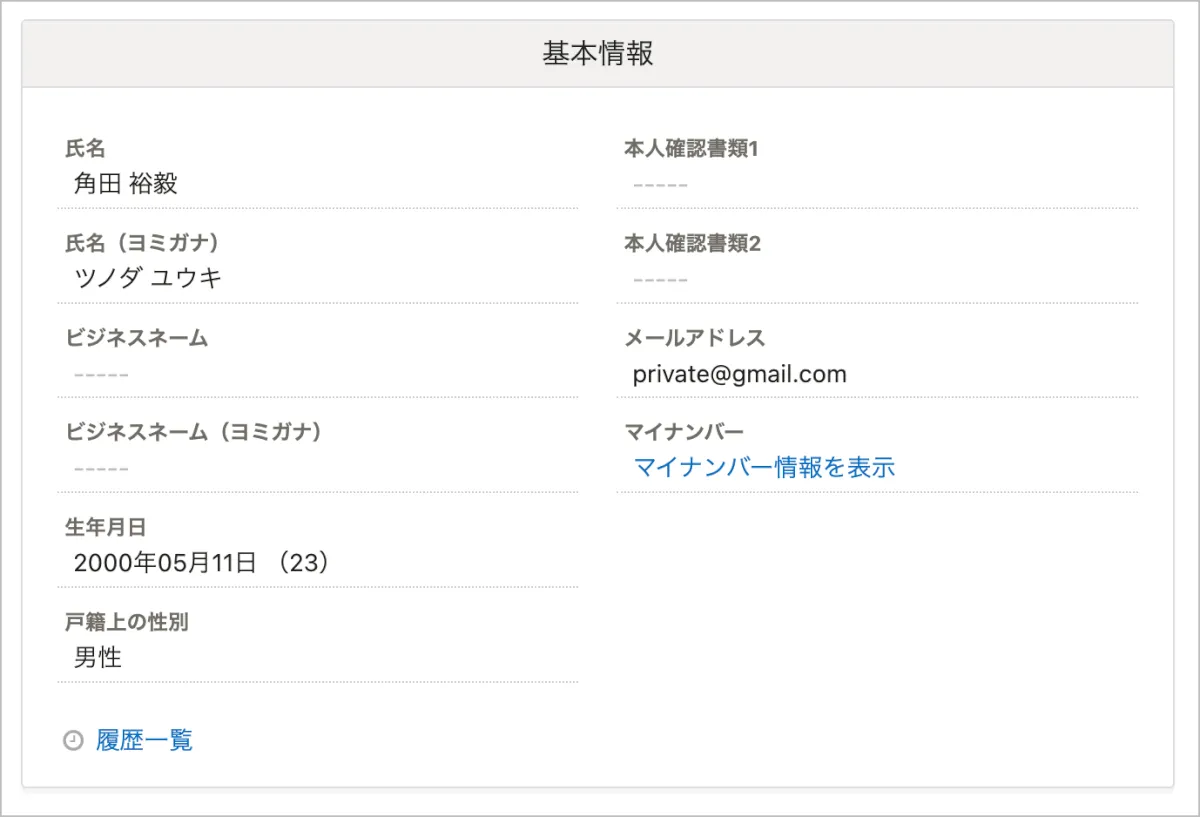 SmartHRの基本情報は以下のようにヨミガナは存在しますが、アルファベット表記がありません。また、メールアドレスも入社前に招待された場合はプライベートなメールが設定さている場合が多いと思います。