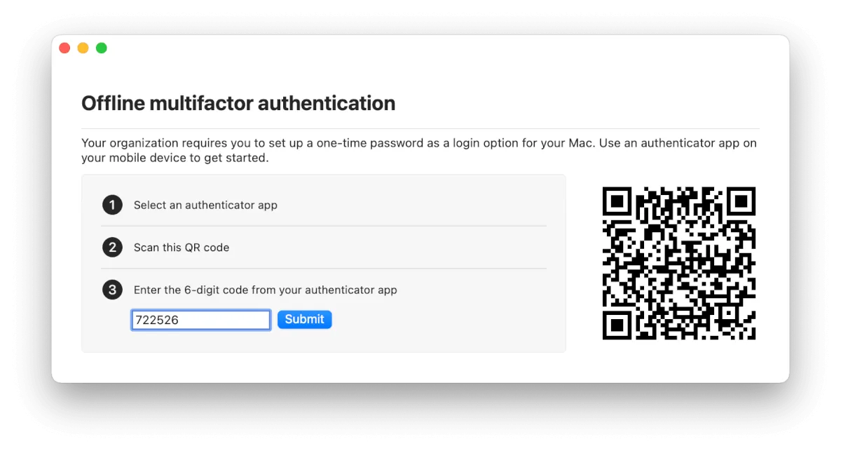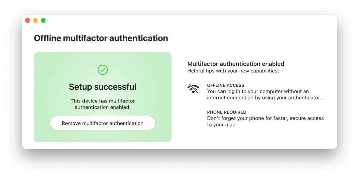 ここでこのOffline MFA機能の登場です。Okta VerifyやGoogle Authenticatorのワンタイムパスワード機能を利用することで、Macがオフラインの状態でもMFAを使用することができるようになりました。