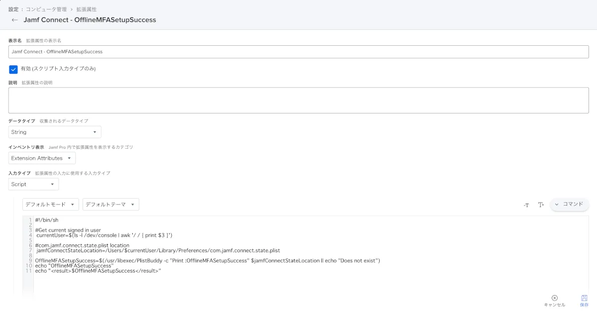 Jamf Proの拡張属性機能を使用すると、OfflineMFA設定が登録されているかどうかが確認できます。
