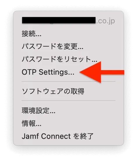 - メニューバーアプリより、「OTP Settings…」を選択します。