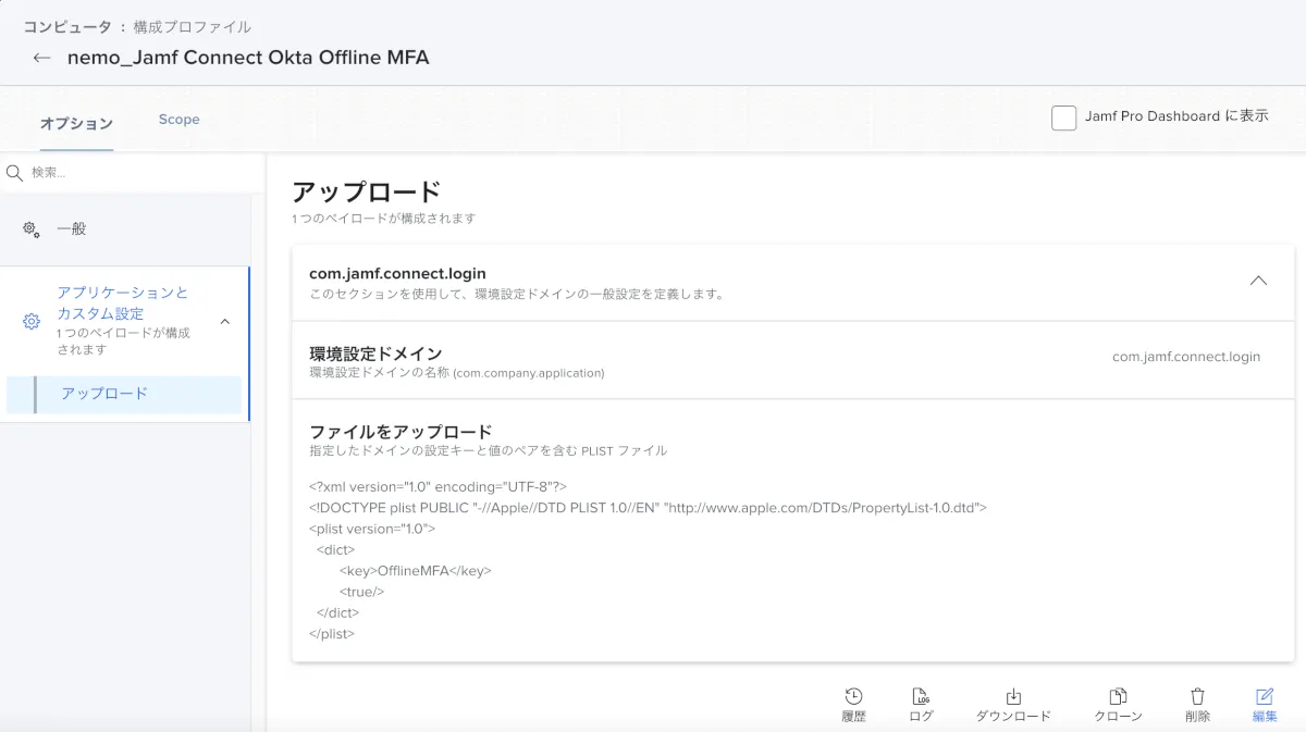 <true/>という設定を入れ込めばOKです。既存の構成プロファイルに書き加えても良いですし、Jamf Connect Configurationを使用している場合は、Authentication欄にOffline MFAが追加されているのでチェックを入れたものをアップロードします。