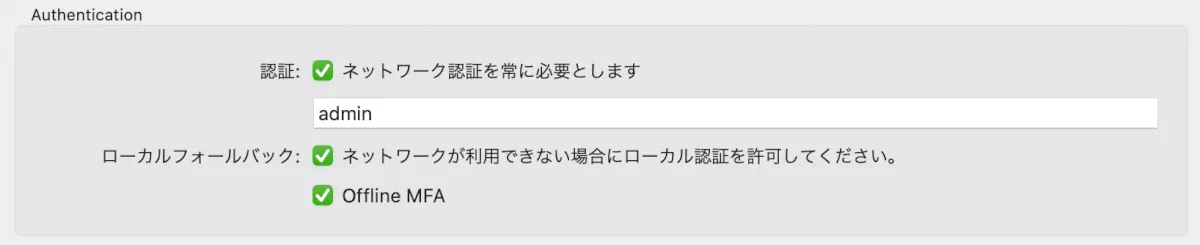 - Jamf Connect Loginの設定でOffline MFAを有効にする