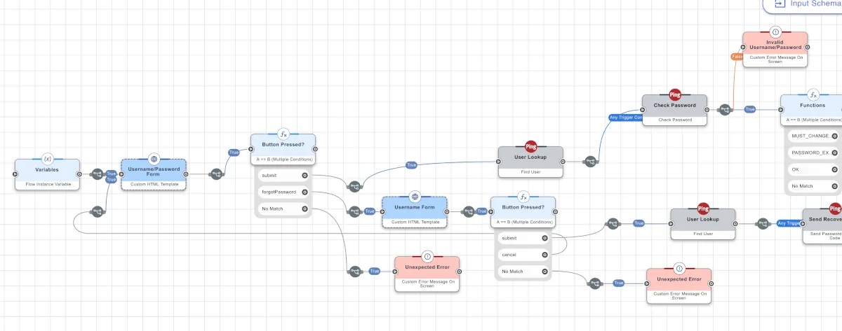 下記はPingOne DaVinciでSign OnとPassword Resetを実装したFlow図です。