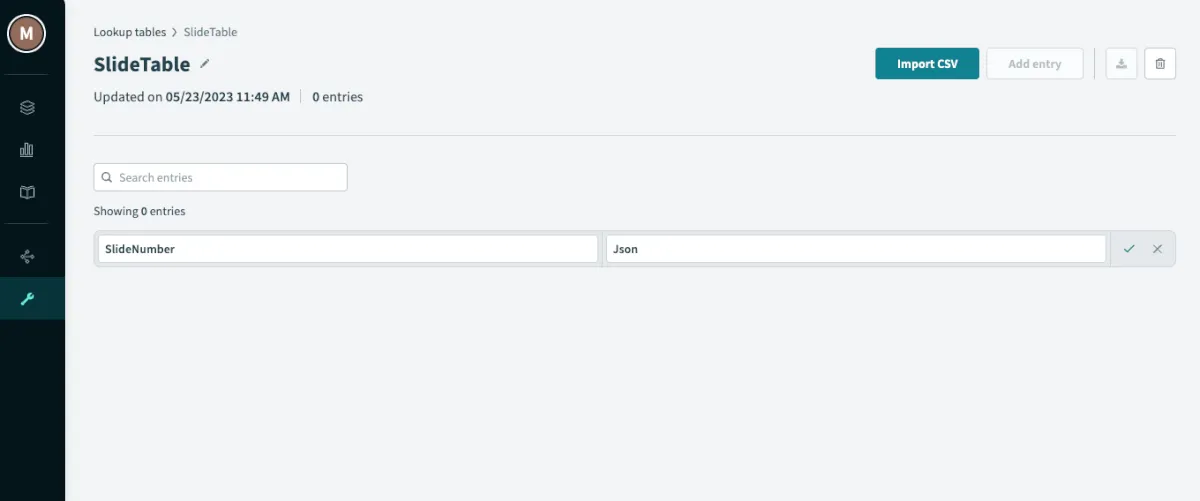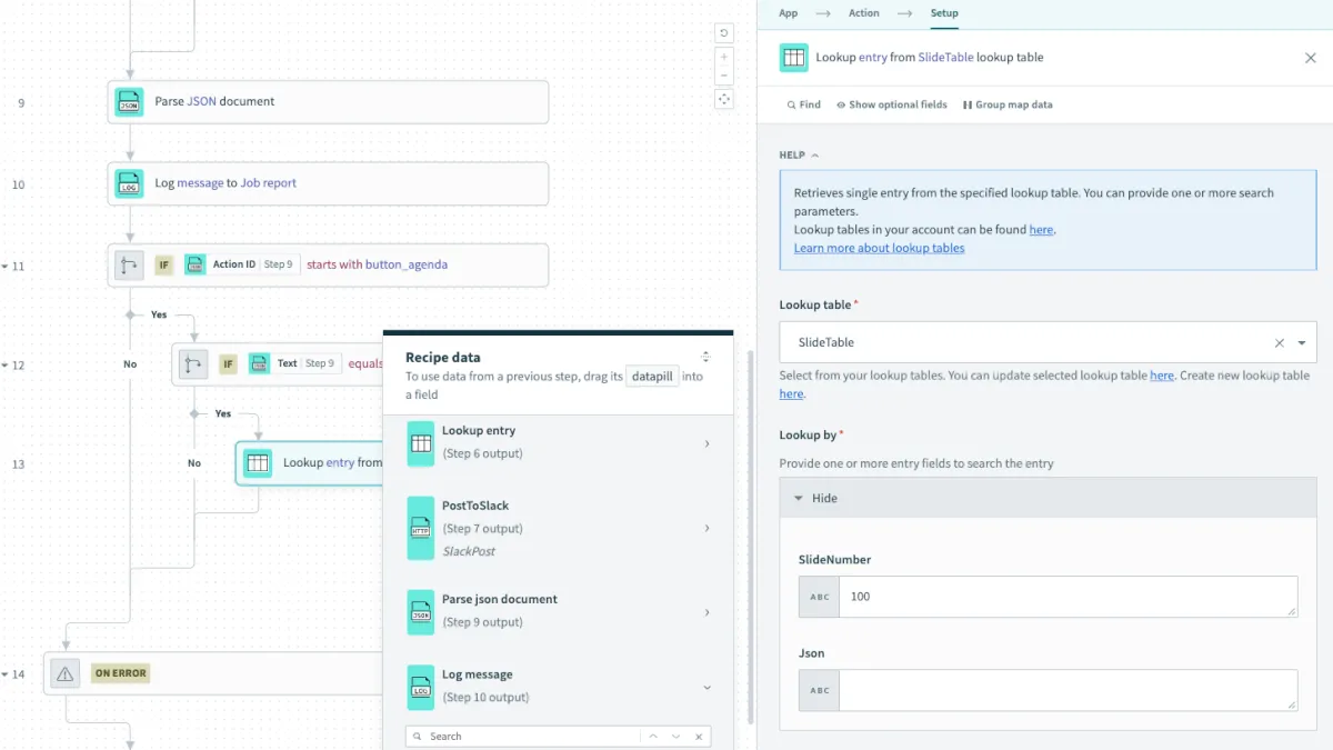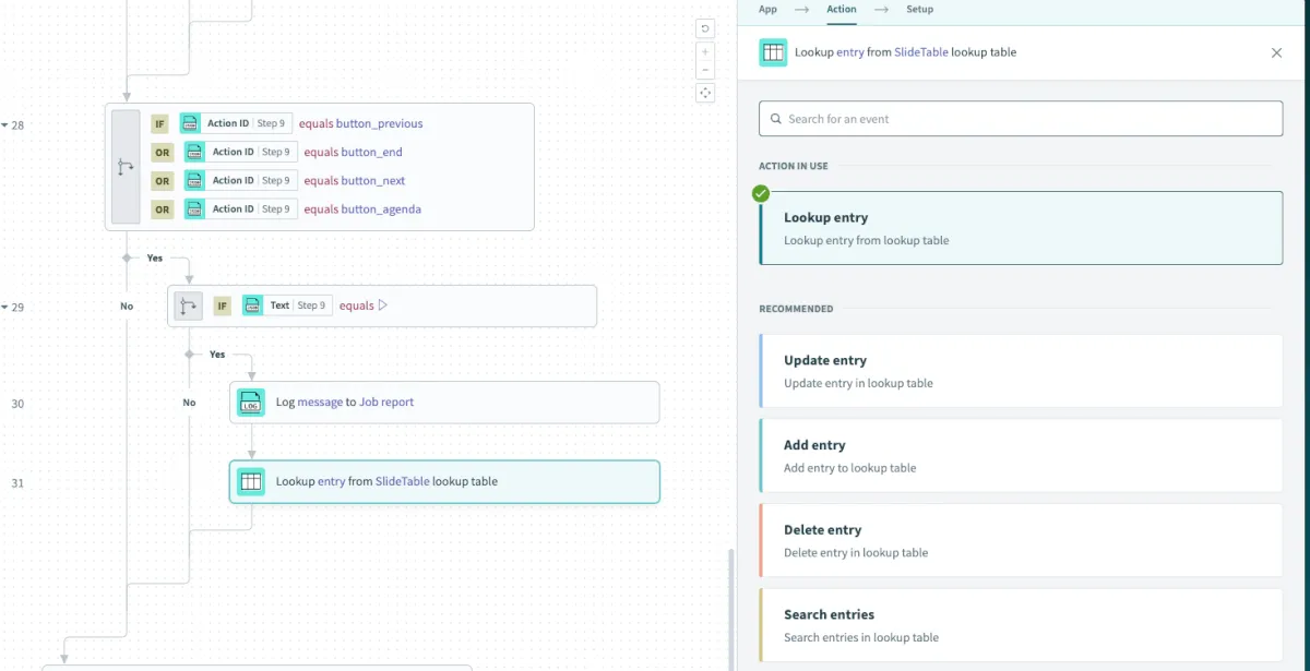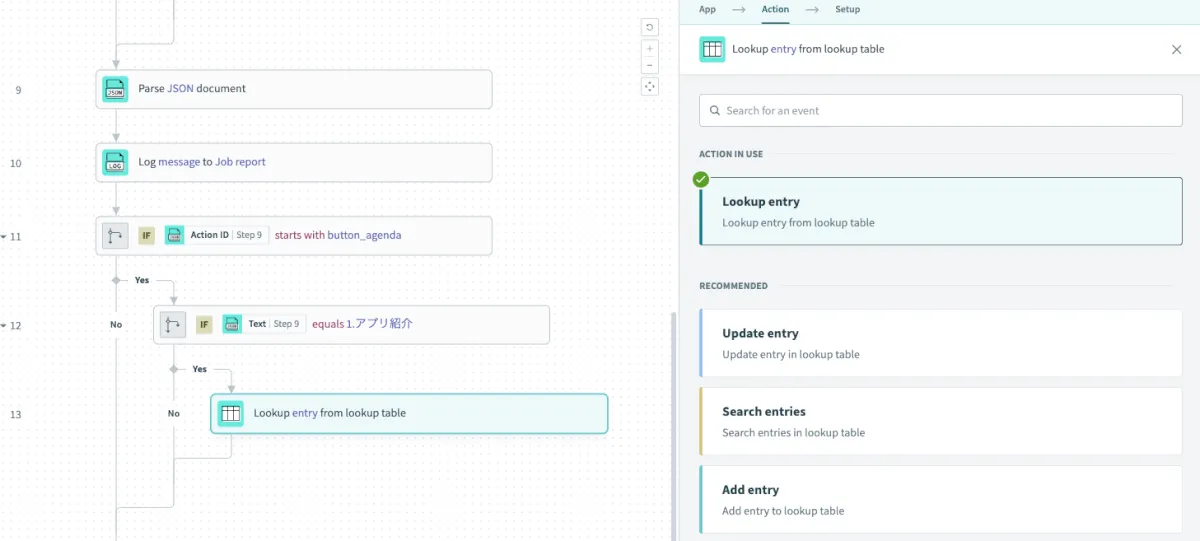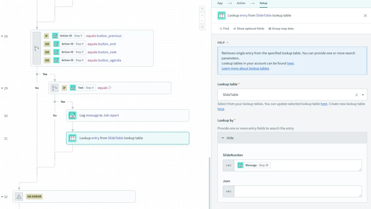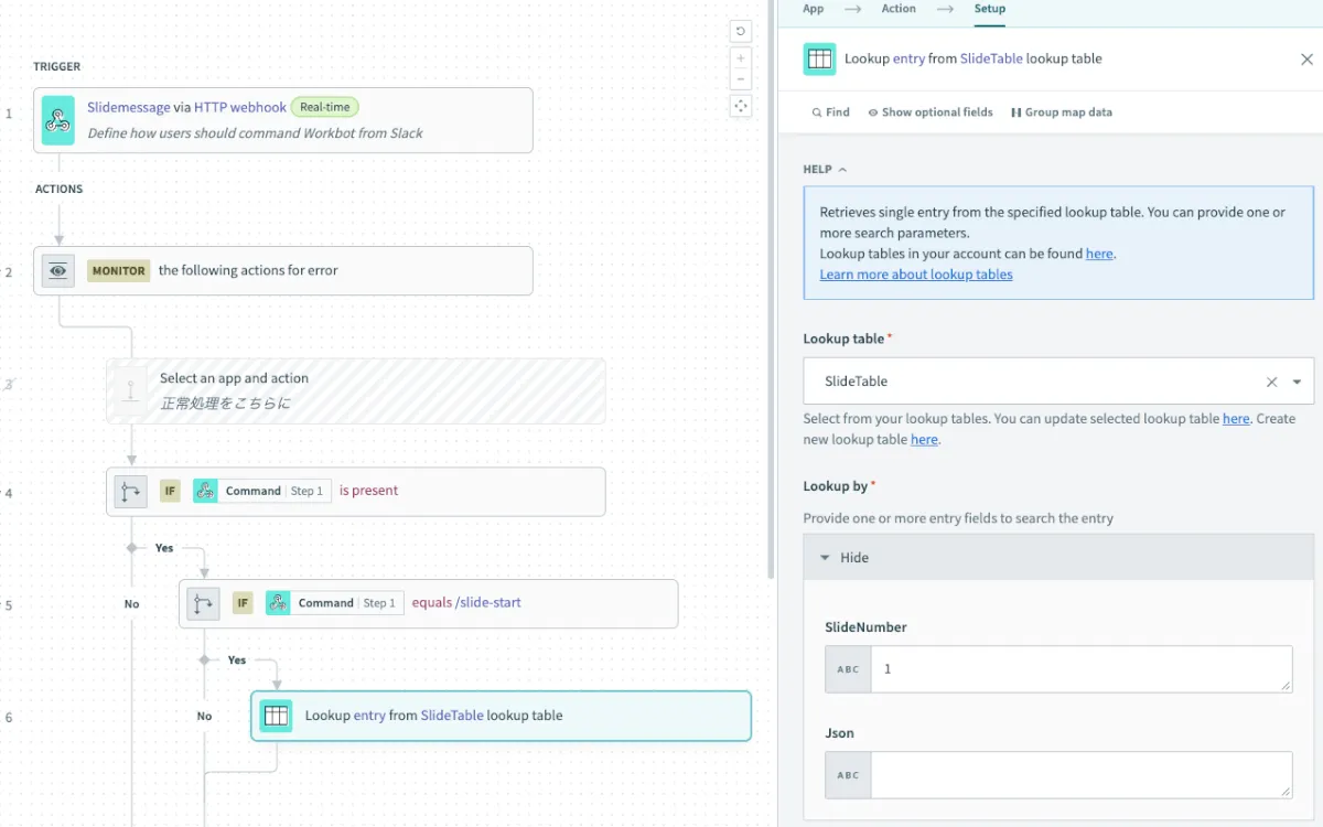 作成したLookupTableを選択し、SlideNumber欄はStep 30 のMessageを選択