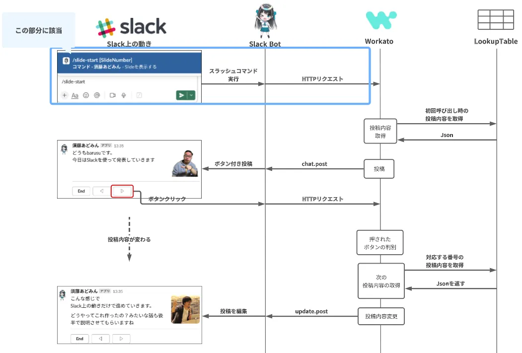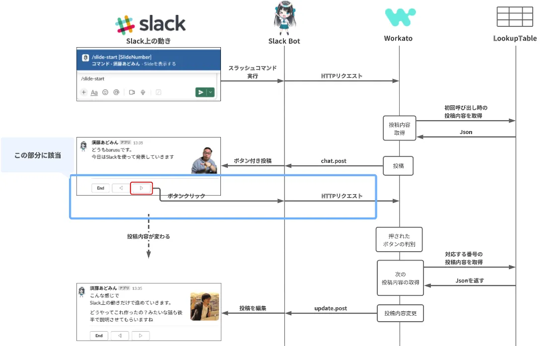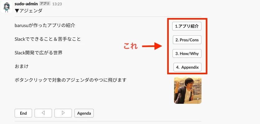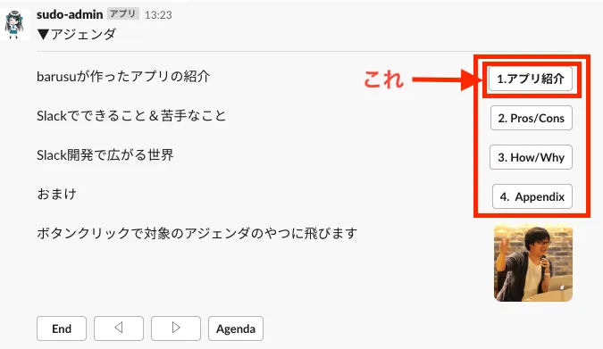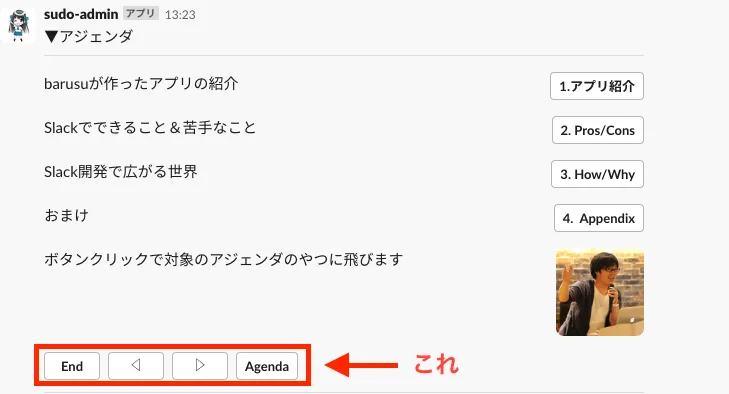 - Slackが提供できない画面を擬似的に作れ、ユーザーの入力や選択を受け付けられる