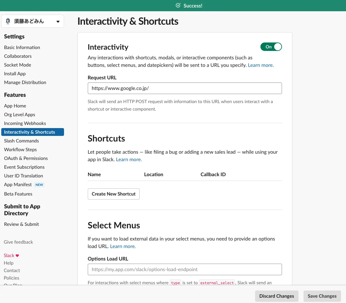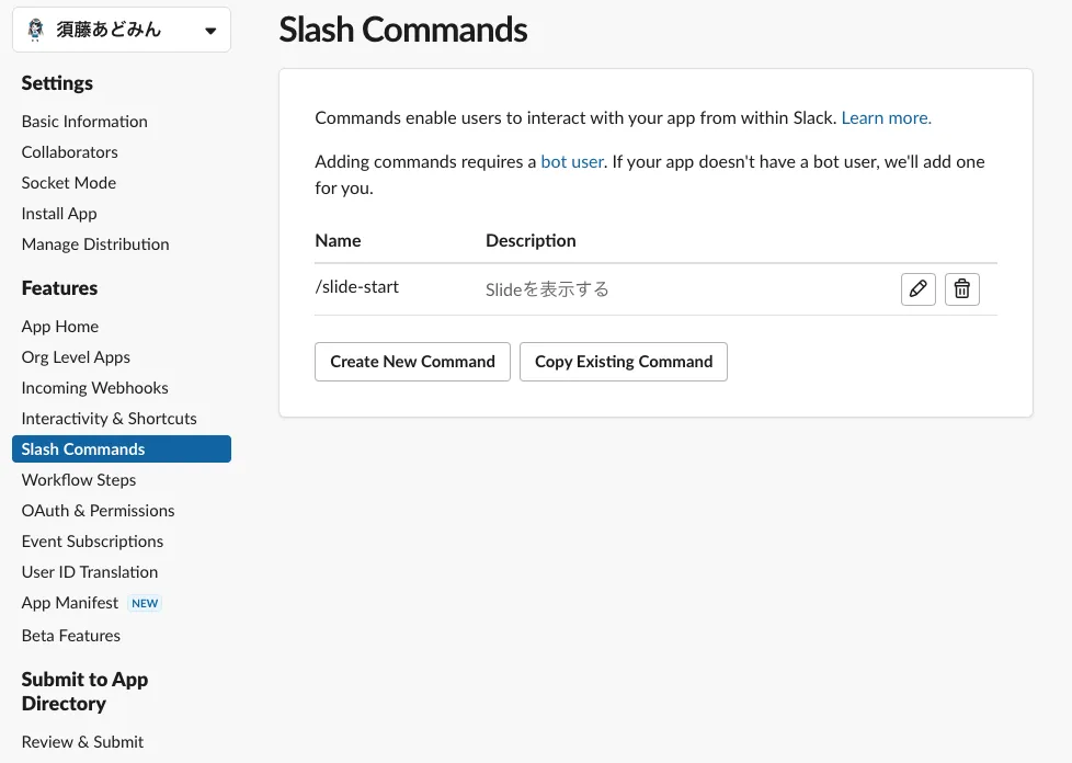 Slack:スラッシュコマンドを設定する