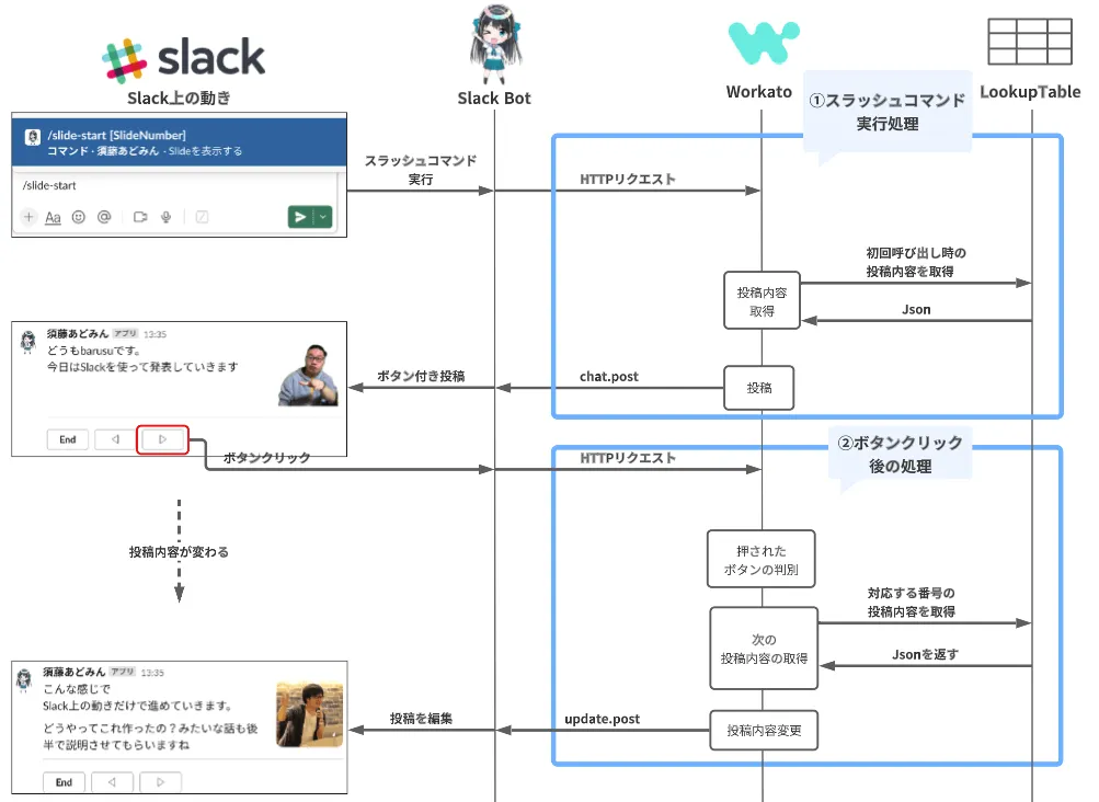 - 主にInteractiveMessageとUpdate.postを使って作ったよ