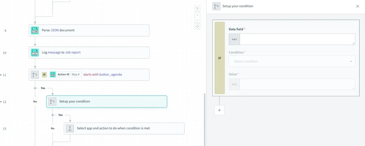 | Step12:If分岐アクション | Condition | Valueを各ボタンの内容に置き換えて変更する |